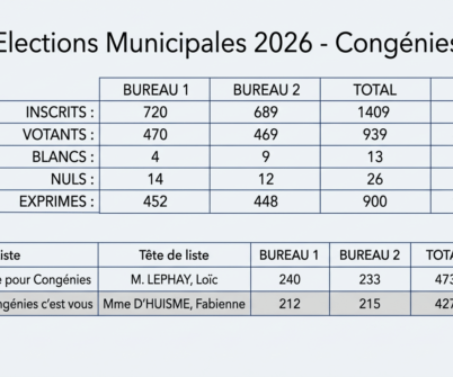 ACTUALITÉS 16 Mar 2026 Résultats des élections municipales 2026Résultats des élections municipales 2026 pour Congenies : La liste de Loïc Lephay, Agir ensemble pour Congenies, remporte les municipales.…