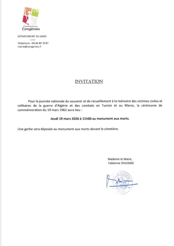 ACTUALITÉS 03 Mar 2026 OLD – Obligation Légale de DébroussaillementComme pour beaucoup de Communes du Gard, le feu de forêt est un risque naturel très présent à Congénies. Pour…