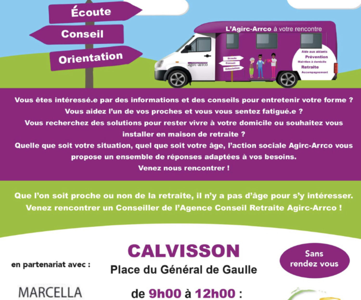 ACTUALITÉS 18 Sep 2023 Agirc-ArrcoLe véhicule de « l’Agirc-Arrco à votre rencontre » fera étape à Calvisson, de 9h à 12h, sur la place…