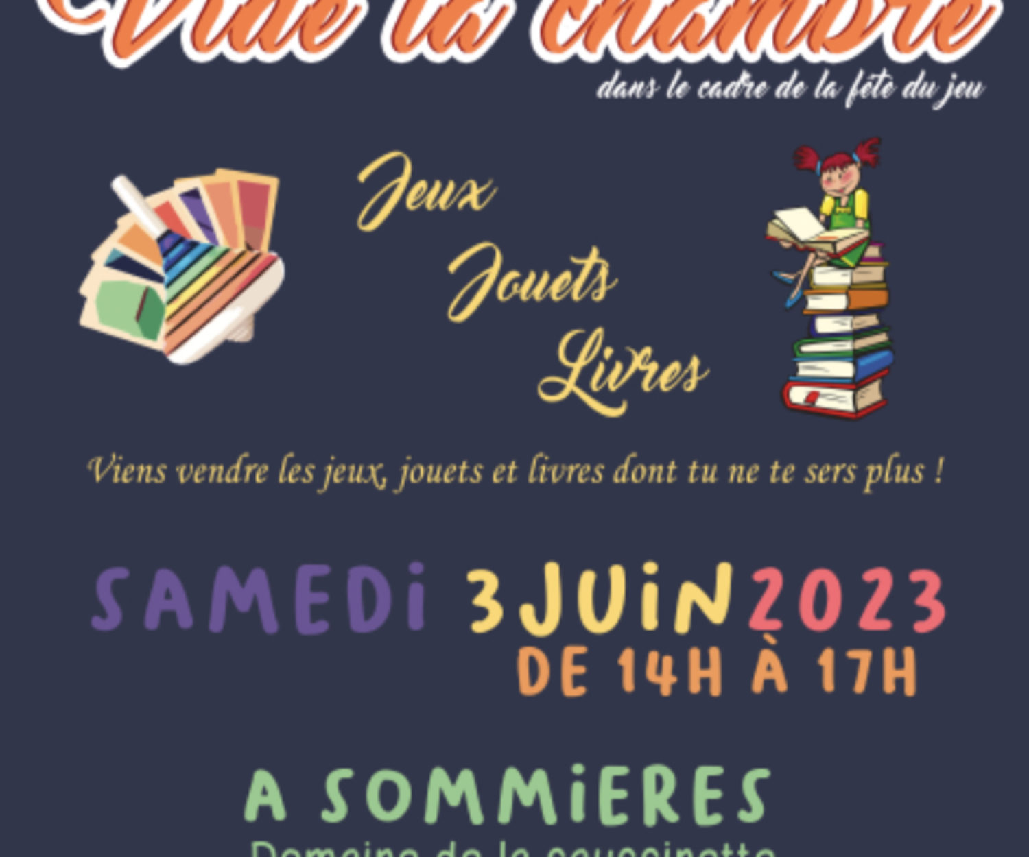 ACTUALITÉS 25 Mai 2023 Fête du jeu / Vide ta chambreÀ Sommières, le 3 samedi juin 2023, de 14h à 19h. Domaine de la Saussinette