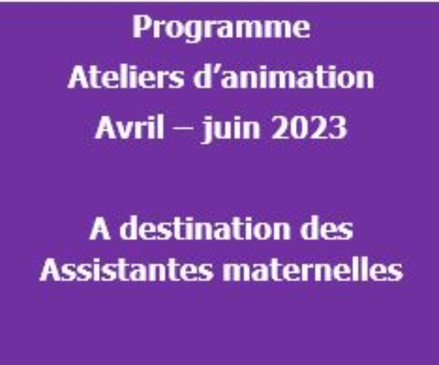 ACTUALITÉS 18 Mar 2023 Ateliers d’animations – A destination des assistantes maternellesA destination des assistantes maternelles ! Veuillez trouver ci-joint le programme d'avril à juin des ateliers d'animations. Calendrier avril -…