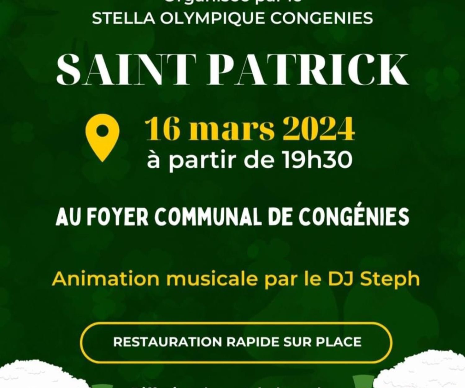 AGENDA 05 Mar 2024 La Stella Olympique fête la St PatrickRejoignez La Stella Olympique de Congénies au foyer communal le 16 mars à 19h30 pour célébrer la Saint Patrick. Buvette,…