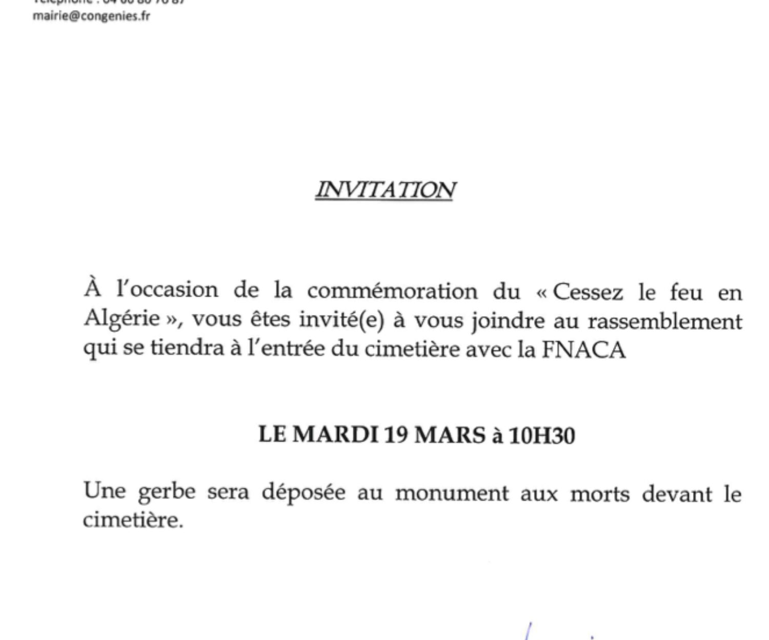 AGENDA 18 Mar 2024 Commémoration AlgérieA l’occasion du cessez-le-feu de l’Algérie, un rendez-vous est proposé mardi 19 mars 2024 !