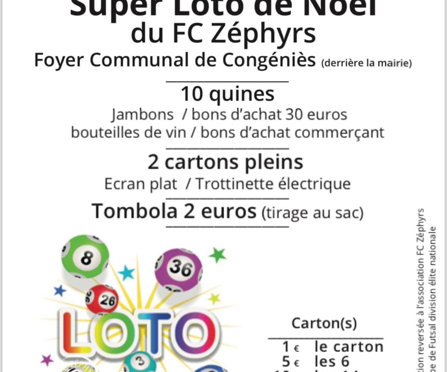 AGENDA 13 Nov 2024 Loto de NoëlLe FC Zéphyrs organise un loto de Noël ouvert à tous le samedi 7 décembre à 19h au foyer de…