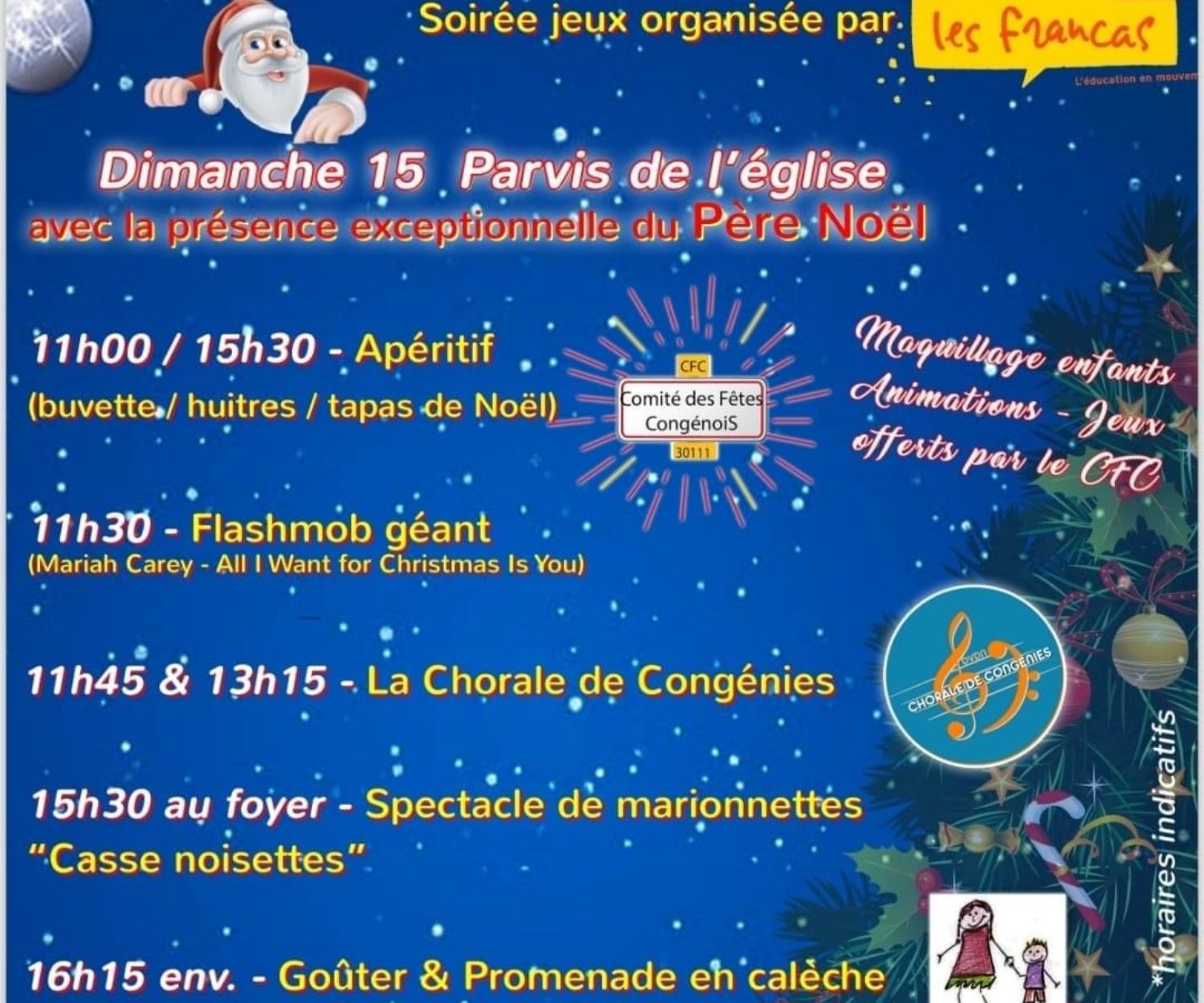 AGENDA 21 Nov 2024 NoelialesSoirée jeux Animations sur le parvis de l’Eglise Maquillage pour enfants Flashmob Chorale Spectacle pour enfants Vente de gâteaux Calèche…