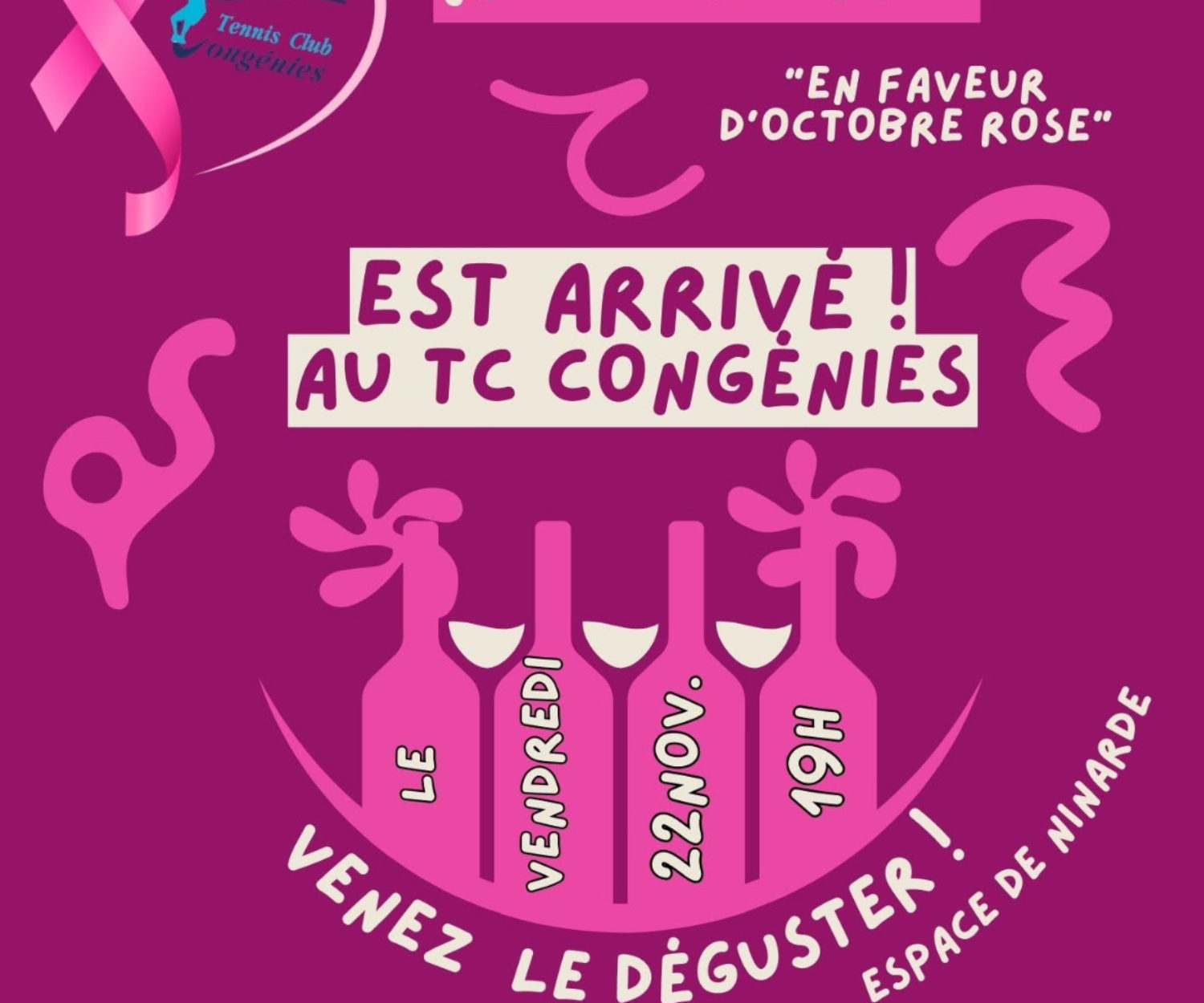 AGENDA 21 Nov 2024 Soirée Beaujolais NouveauLe TC Congenies organise une soirée Beaujolais Nouveau ! Beaujolais Petite restauration : Soupe de courge / paninis / charcuterie……
