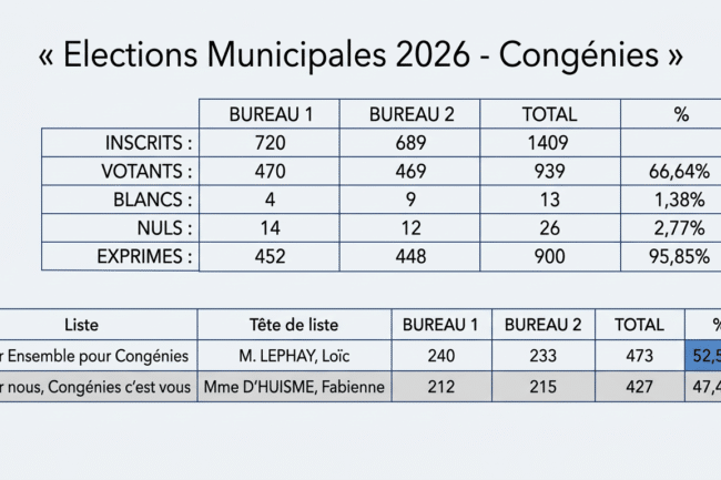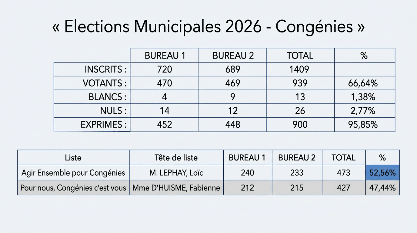 Résultats des élections municipales 2026 pour Congenies :