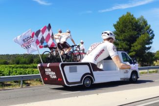 Cette belle matinée a été marquée également par un splendide ballet aérien d’hélicoptères et aussi… par la première tentative d’échappée de cette 13eme étape !!!